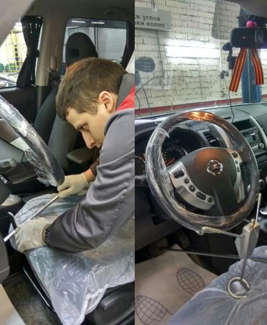 Фиксация рулевого колеса и педали тормоза